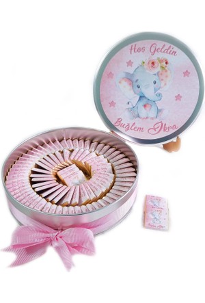Isimli Kiz Bebek Cikolatasi Metal Kutu Cikolata Sepeti