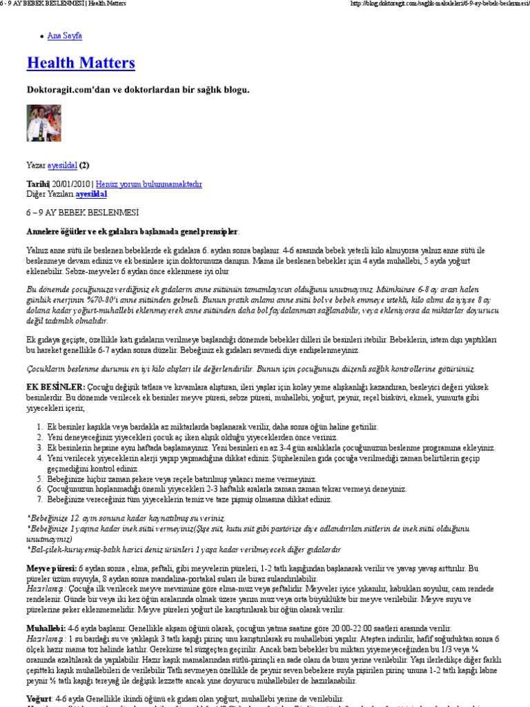 Aylara Gore Bebek Beslenmesi Saglik Diyet Spor