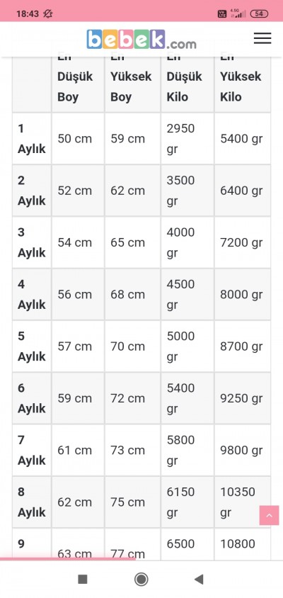 Bebek Boy Kilo Cetveli 2020 Buyurken Com