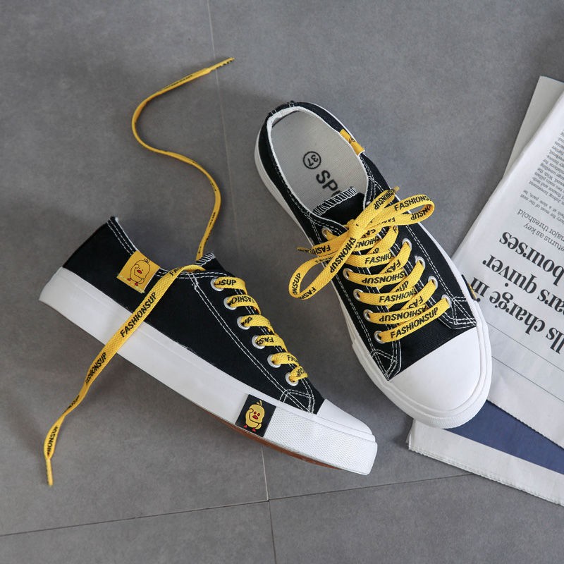 1 Pasang Sepatu Sneakers Bahan Kanvas Warna Kuning Motif Bebek Gaya Harajuku Korea Untuk Wanita Shopee Indonesia