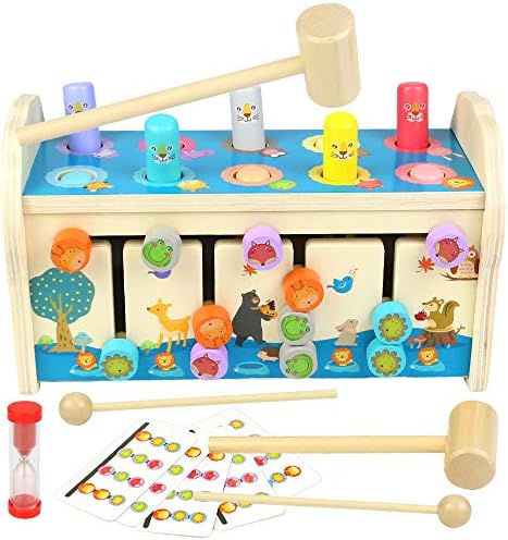 Jerryvon Montessori Wooden Hammer Toys With Xylophone Labyrinth 3 In 1 Animal Hammer Pounding Bench Toy Toddler Educational Toys Boys Girls Gifts For 2 3 4 5 Years Old Amazon Co Uk Toys Games