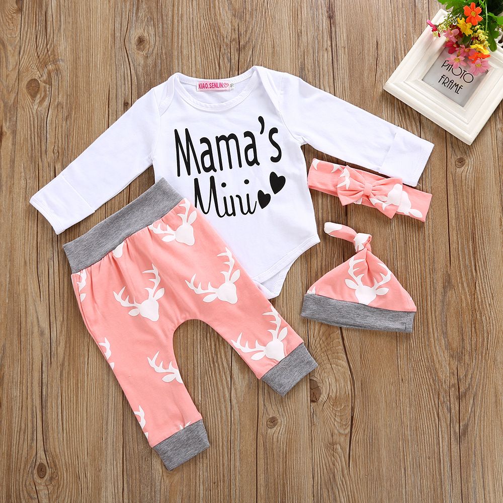 Satin Al Cocuklar Noel Giyim Pamuk Bebek Kiz Giysileri Yenidogan Bebek Kiyafetleri Kollu Romper Pantolon Kafa Sapka 4 Adet Kizlar Set Kiz Giyim Tl73 38 Dhgate Comda