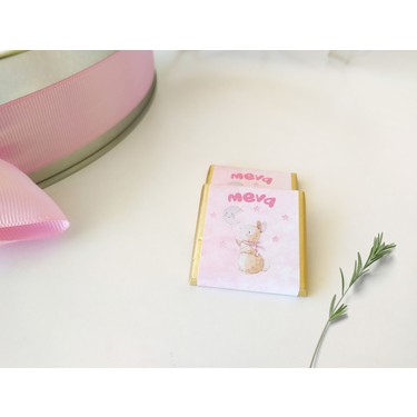 Cicekli Tavsan Figurlu 100 Adet Isme Ozel Baskili Metal Kutu Bebek Cikolatasi