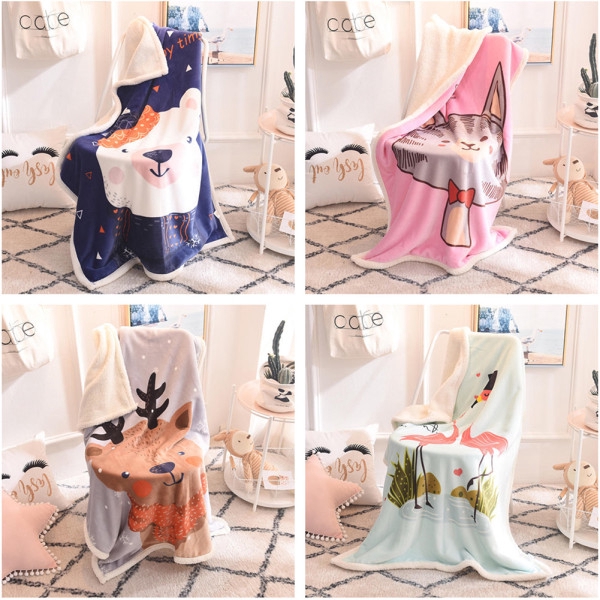 Children Blanket Thickened Warm Berber Fleece Flannel Small Quilt Cartoon Baby Blanket Shopee Indonesia