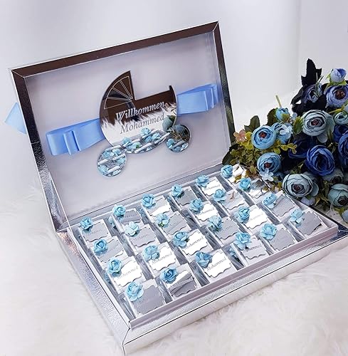 Schokoladenbox Schokoladenset Schokoladenschachtel Personalisiert Plexi Plexiglas Acryl Acrylglas Gastgeschenke Pleksi Kinderwagen Geburt Geburtstag Bebek Cikolatasi Puset Dogum Gunu Amazon De Handmade