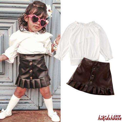 Mg Toddler Kids Baby Girls Set Ruffle Tops Leather Skirt Dress Outfits Shopee Indonesia
