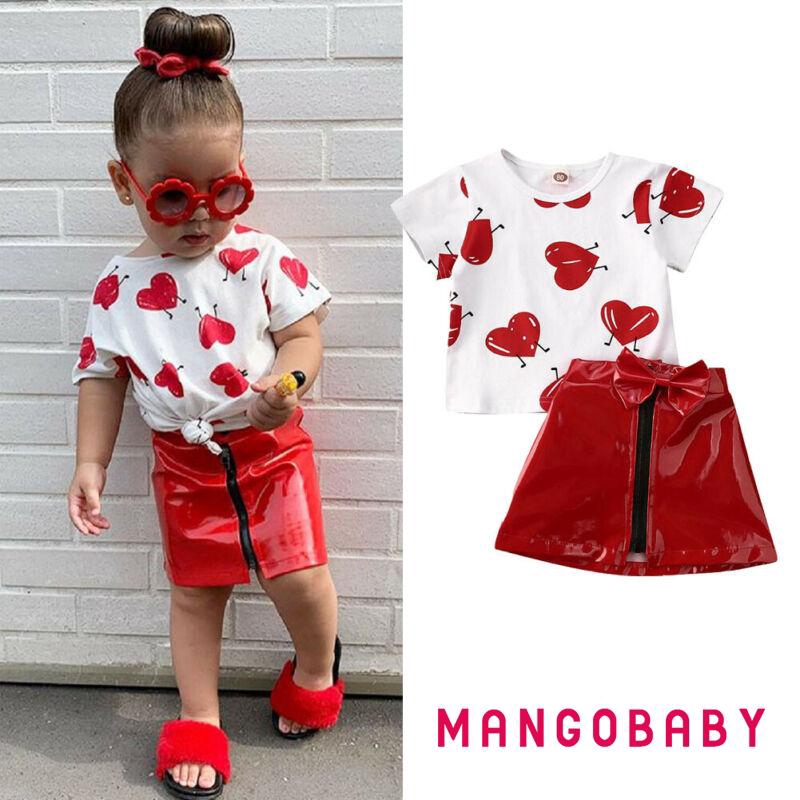 Mg Baby Girl Valentines Day Clothes Love Cotton T Shirt Top Leather Skirt Outfit Set 1 5y Shopee Indonesia