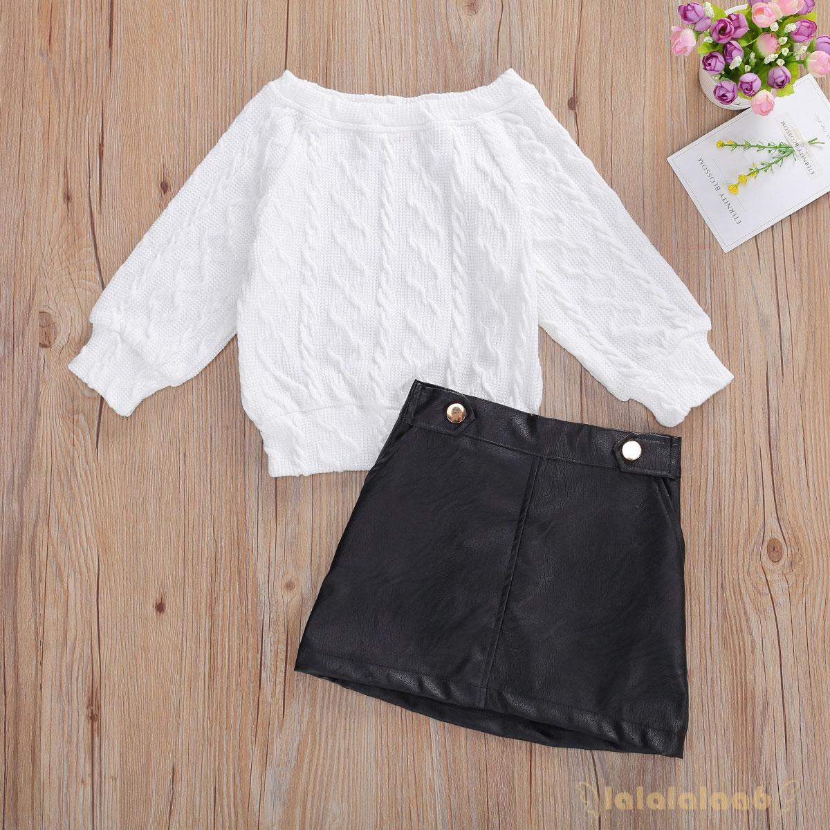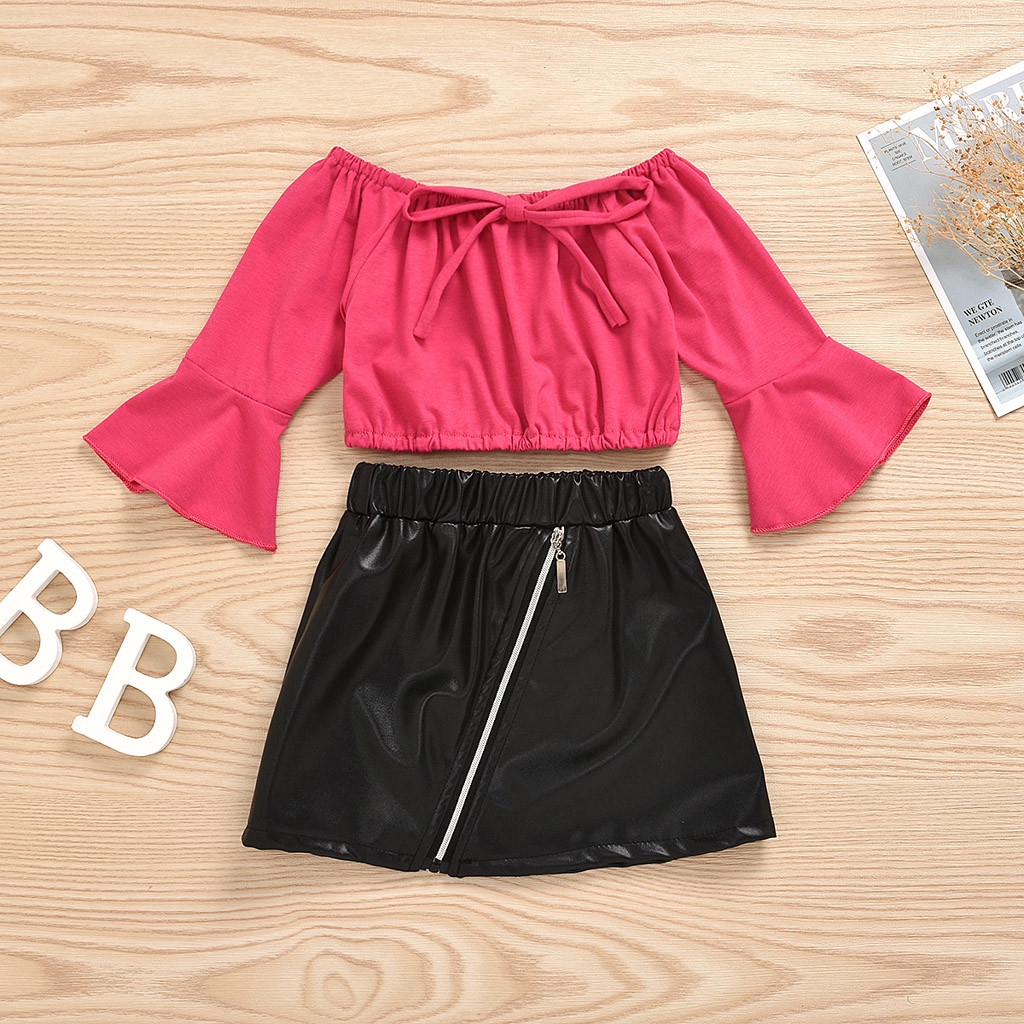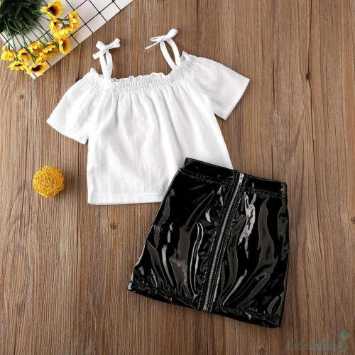 Toddler Kids Baby Girl Off Shoulder Tops Tight Leather Skirt Outfit Clothes Shopee Indonesia
