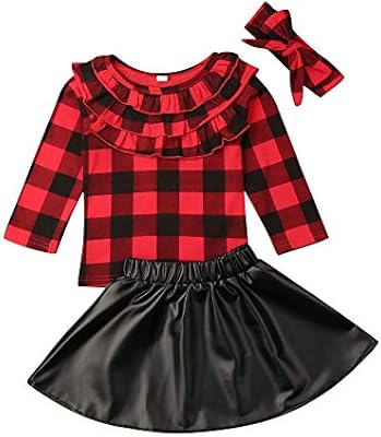 Toddler Baby Girl Christmas Outfit Plaid T Shirt Tops Leather Skirt Dress Clothes Set Red Plaid Tee Shirt Leather Skirt 4 5t Buy Online At Best Price In Uae Amazon Ae