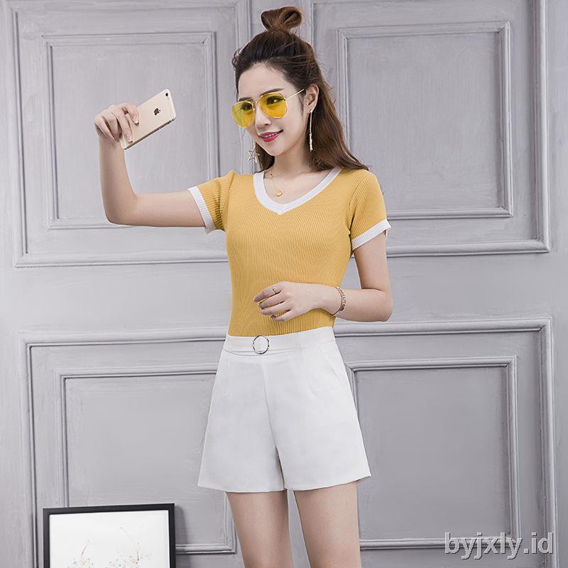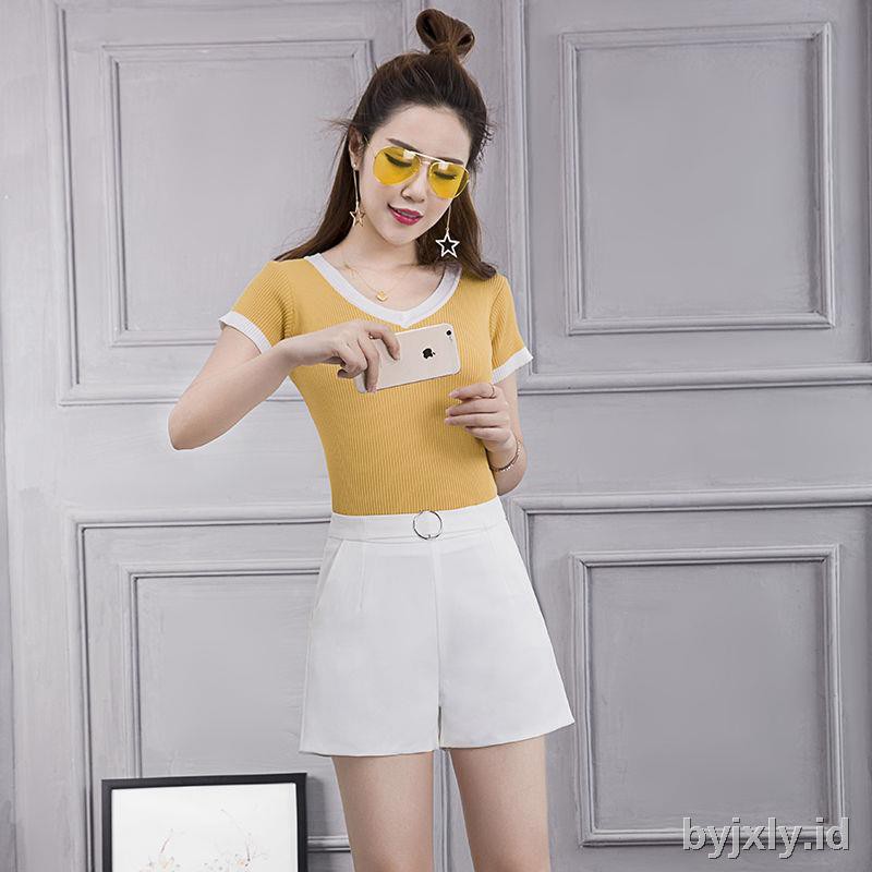 Han Edition Celana Pendek Lebar Warna Putih Polos Untuk Wanita Shopee Indonesia