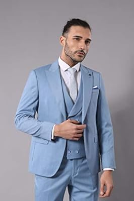 Desenli Yelekli Bebek Mavisi Takim Elbise Wessi
