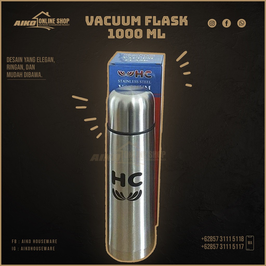 Vacuum Bottle Hc Termos Air Panas Stainless Steel Hc 1000 Ml Merk Hc Shopee Indonesia