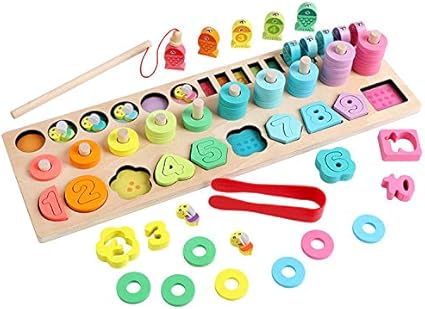 Baby Montessori Math Toys Kids Educational Wooden Toys 5 In 1 Fishing Count Numbers Matching Digital Shape Log Board Puzzle Toy Aliexpress