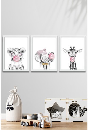 Tablokey 3 Lu Dekoratif Duvar Tablo Seti Hayvan Figurlu Cocuk Odasi Bebek Odasi Trendyol
