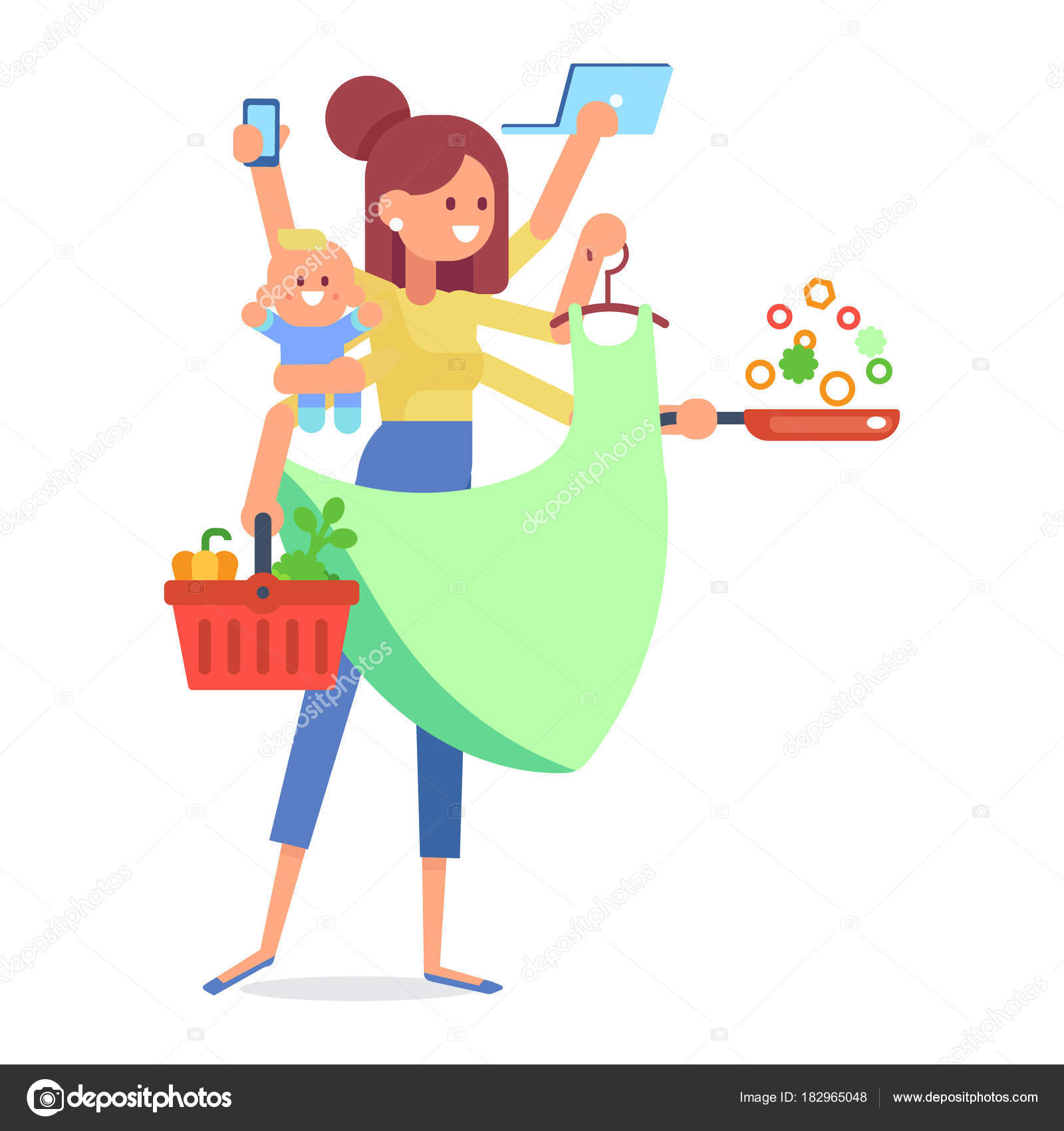 Mother Carries Baby And Pushing Shopping Cart Mother Shopping Royalty Free Cliparts Vectors And Stock Illustration Image 55425129