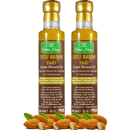 Vital Home Tatli Badem Yagi Soguk Pres 100 Dogal 250 Ml Fiyati