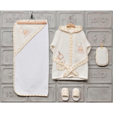 Turkiz 5 Prc Bebek Bambu Bornoz Seti Krem
