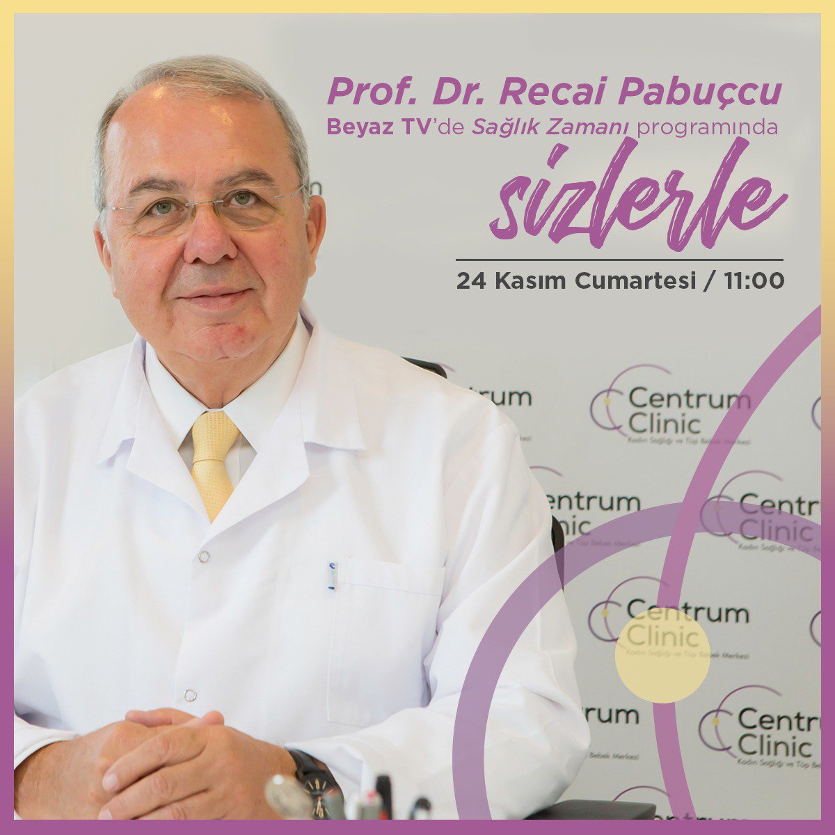 Centrum Clinic On Twitter Kadin Hastaliklari Ve Dogum Uzmanimiz Prof Dr Recai Pabuccu 24 Kasim Cumartesi Beyaz Tv De Saglik Zamani Programinda Olacak Herkesi Saat 11 00 De Ekran Basina Bekliyoruz Sakin Kacirmayin Centrumtupbebekmerkezi