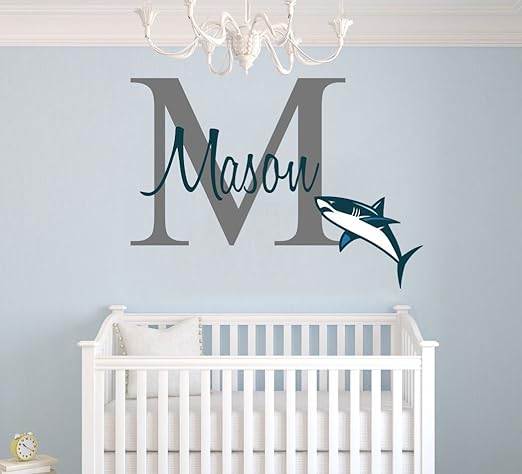 Amazon Com E Graphic Design Inc Custom Name Initial Shark Animal Series Nursery Wall Decal For Baby Room Decorations Mural Wall Decal Sticker For Home Children S Bedroom Mm76 Wide 22 X