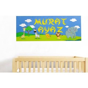 Isme Ozel Hayvan Figurlu Erkek Bebek Odasi Tablo Seti Hediye Limani