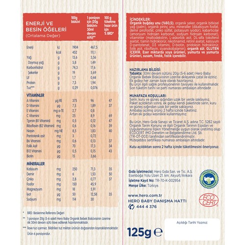 Hero Baby Organik Bebek Biskuvisi 500g 4x125g Fiyati
