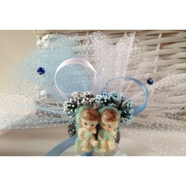 Leylekli Ikiz Bebek Magneti Erkek Modeli Huner Hediyelik