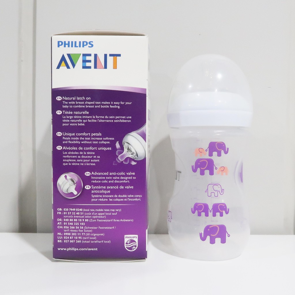 Botol Susu Avent Natural Deco 260ml Motif Gajah Pink Ungu Elephants Shopee Indonesia