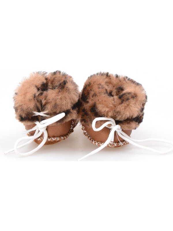 Camel Renk Deri Bebek Patigi Cocuk Ev Ayakkabisi Hakiki Kuzu Kurklu
