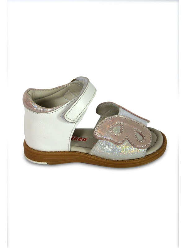 Hakiki Deri Beyaz Ortopedik Fiyonklu Kiz Bebek Sandalet A85 B