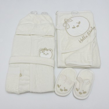 Bebitof 3109 Bebek Bornoz Seti Krem Ilke Bebe
