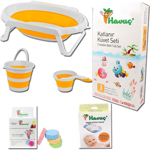 Katlananir Bebek Kuvet Seti Sari Katlanabilir Bebek Banyo Seti