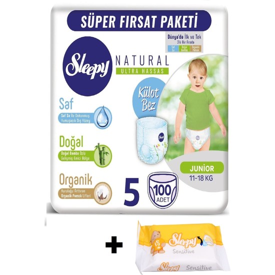 Sleepy 5 Beden Natural Kulot Bez Junior 100 Adet 11 18 Kg Fiyati