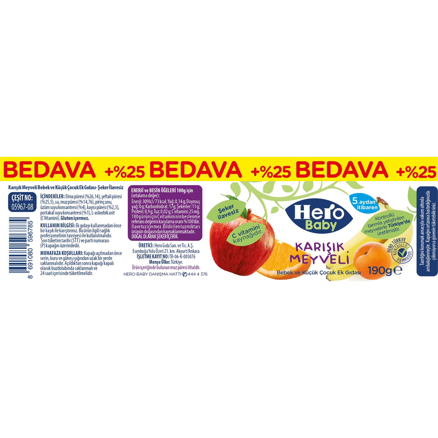 Hero Baby Karisik Meyve Pureli Kavanoz Mama 190 Gr Fiyati