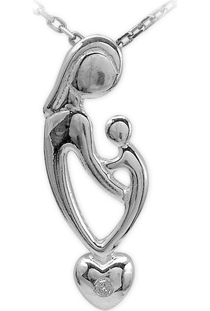 Anne Bebek Temali Kalp Sonsuzluk Gumus Kolye Mia Vento