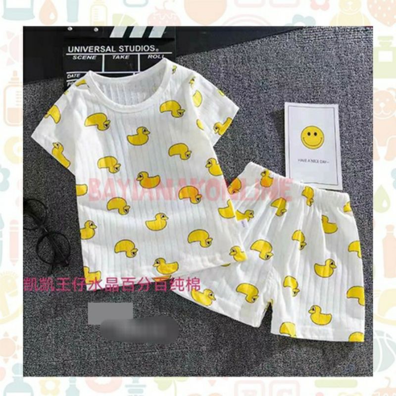 Piyama Anak Import Baju Tidur Main Anak Setelan Celana Pendek Bebek Putih Shopee Indonesia