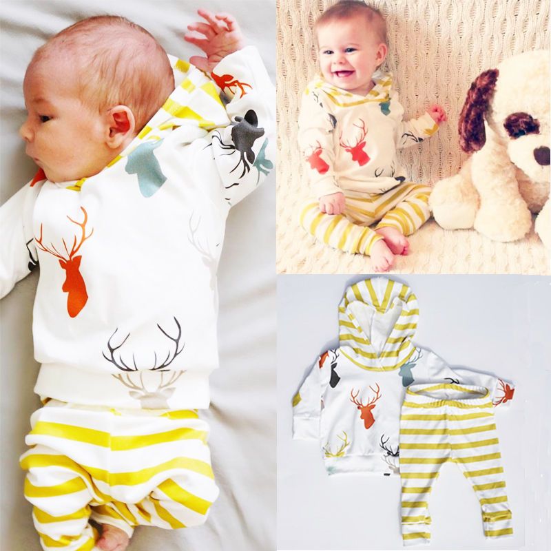 Satin Al Yenidogan Erkek Bebek Kiz Takim Elbise Kalin Hoodies Sari Cizgili Pantolon Sevimli Geyik Ustleri T Gomlek Pantolon Outift Cocuk Erkek Kiz Set Pamuk 5 03 Dhgate Com Da