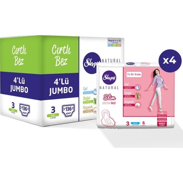 Sleepy Natural Bebek Bezi Ikili Paket Jumbo 3 Numara 34x2x 4 Paket 272 Adet Trendyol