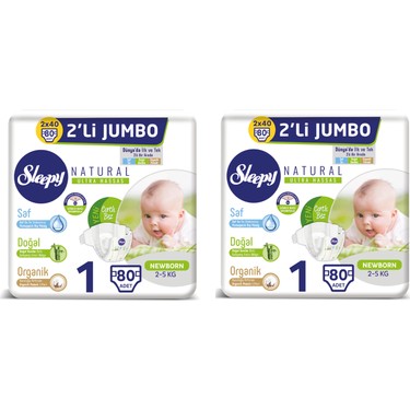 Sleepy Natural Bebek Bezi Ikili Jumbo 1 Beden 80 X 2 Paket Fiyati