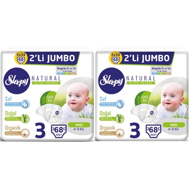 Sleepy Natural 3 Numara Midi 2 Li Jumbo 68 Adet Bebek Bezi Fiyati