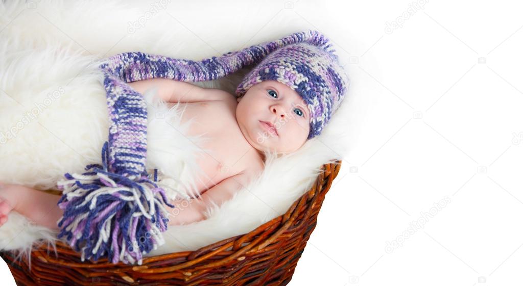 Yeni Dogan Bebek Sepet Beyaz Arka Plan Uzerinde Bir Cok Renk Sapka Icinde Yatiyor Stok Foto C Loya Ya 58973959